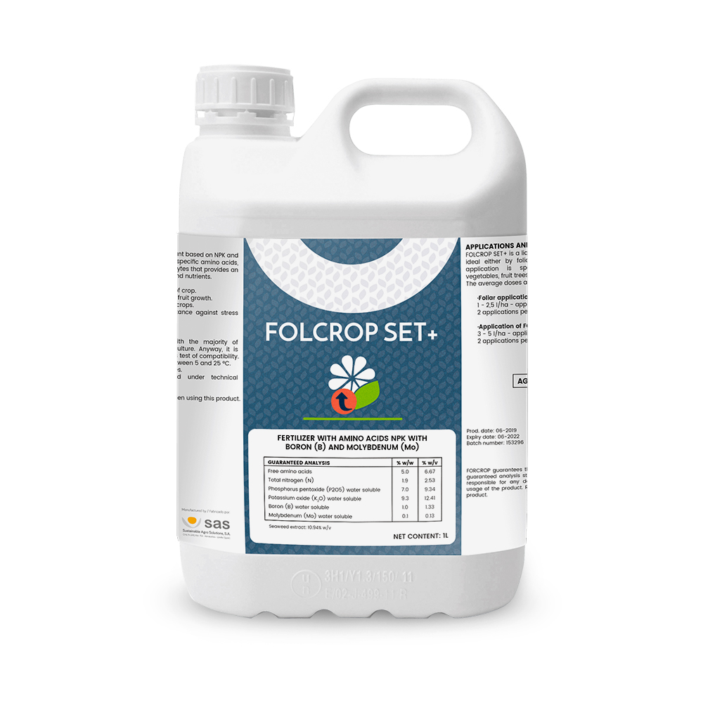 Фосфор играет определяющую роль в моменты цветения. Сочетание фосфора, специфических аминокислот, биомолекул и осмолитов, а также микроэлементов, присутствующих в FOLCROP SET+ великолепно способствует процессам