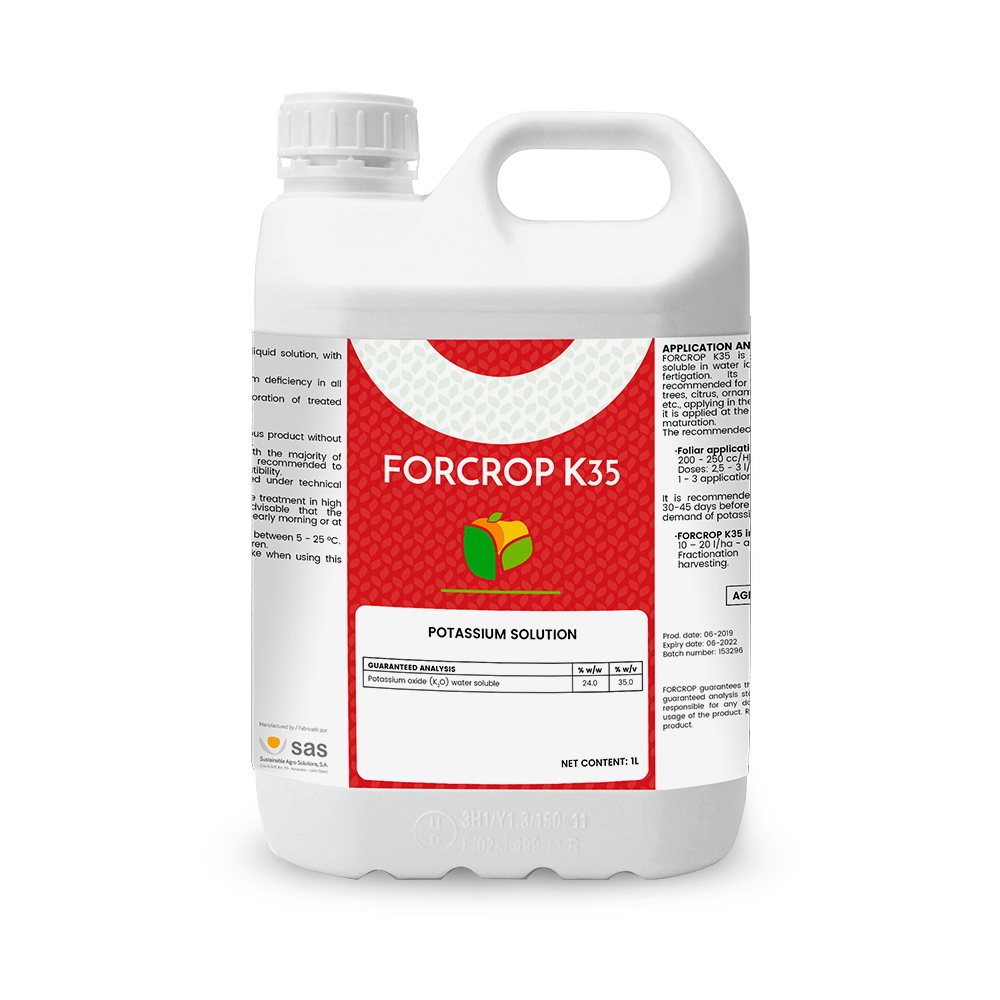 Жидкий слегка кислый раствор с высоким содержанием калия и органических трикарбоновых кислот. Восполняет дефицита калия у растений любого типа.