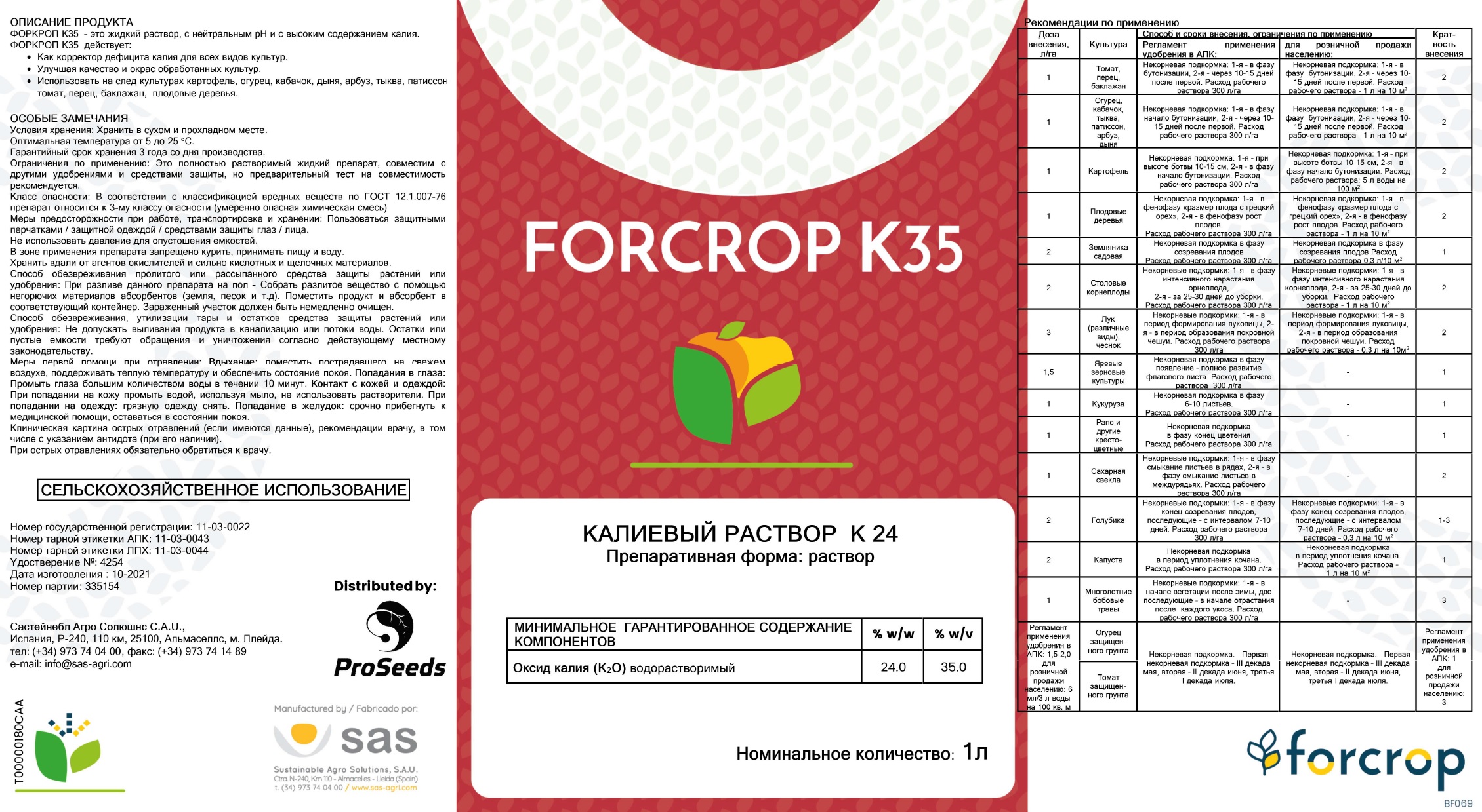 Высокоэффективный источник калия специально разработанный для листового питания.