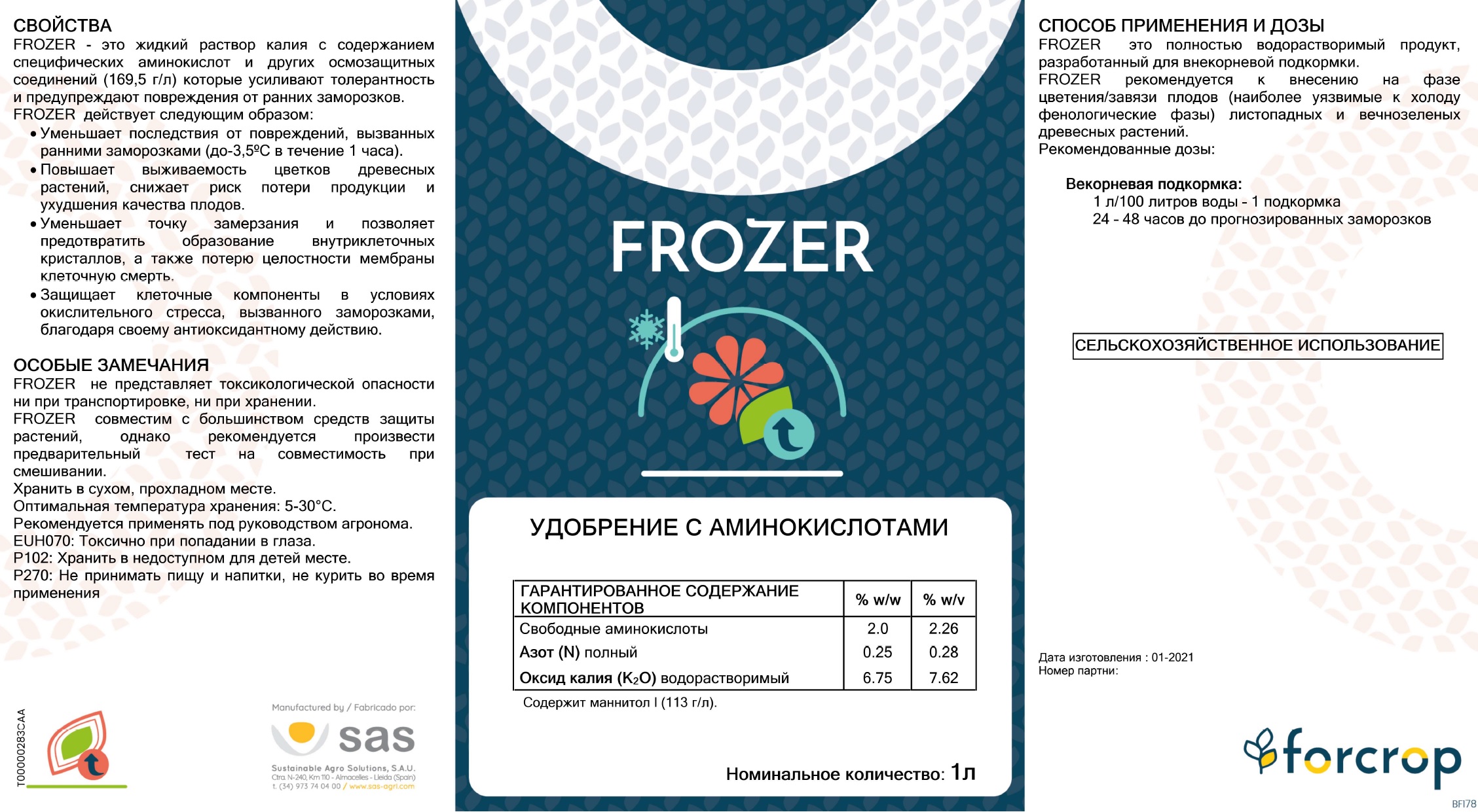 Эффективность действия в течении 7 дней после внесения, Желательно внести за 48 часов до предполагаемых заморозков.
